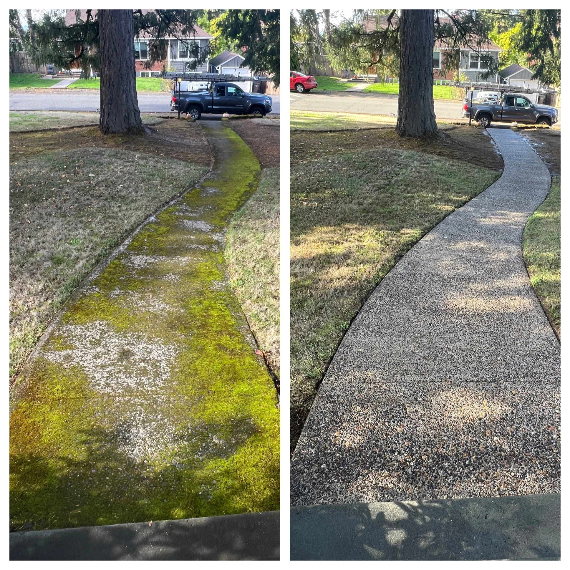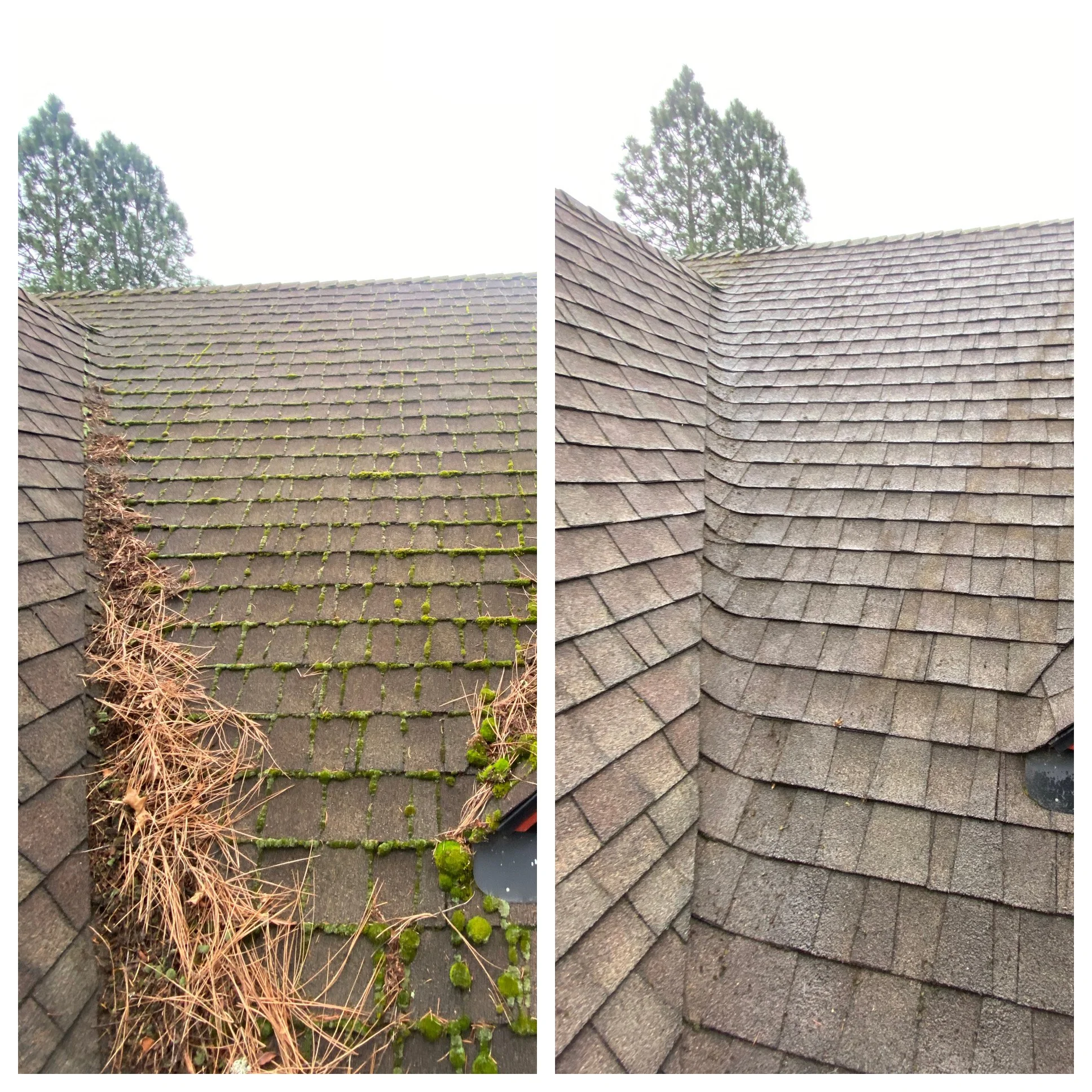 Not only do mossy roofs look bad, but moss is TERRIBLE for a roof. When moss grows between shingles it slowly pulls them apart, leading the way for leaks and possibly thousands of dollars worth of damage. If you call us for your Roof Cleaning, we can save you money and headaches dealing with issues down the road. Over the years we’ve helped thousands of clients with their Roof Moss Removal and we want to help you too. Don’t let some guy show up with a pressure washer and completely ruin your roof. We gently remove moss from your roof by brushing with nylon bristle brushes to ensure no damage is done. We clean up our mess and will give you a plan to ensure moss stays off your roof for the rest of the roofs life. Call us today for your FREE Roof Cleaning Quote.